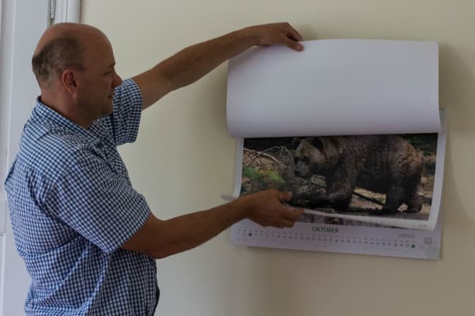 У кабінеті селищного голови, окрім купи книжок та спортивних нагород, вже є багато речей із ведмедями. Сумки, календарі, маленькі статуетки та великий дерев’яний макет ведмежати.