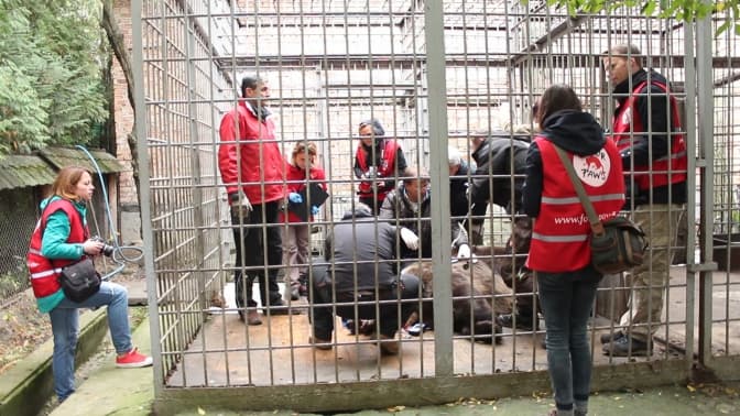 За півгодини все готове. Співробітники організації Four Paws разом із лікарями заходять за паркан і повільно наближаються до клітки. «Пф», – шприц із снодійним вистрілює зі спеціальної рушниці й влучає у тіло тварини. Маша ричить на незнайомців, проте вже за декілька хвилин сідає, опускає голову й м’яко падає на землю.