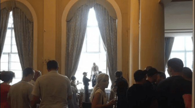 Активістів намагались зупинити представники «Муніципальної дружини», яка в цей момент здійснювала охорону приміщення. В момент, коли активісти забігли у велику сесійну залу, де засідають депутати, вони побили кількох працівників «Муніципальної дружини».
