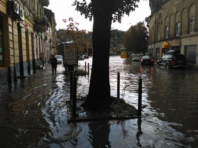 «На вул. Сахарова є підтоплення, зараз там від замулення чистять дощоприймачі. На вул. Джерельній вода вже спадає. Також є підтоплення на вул. Городоцькій, 12, на пр. Чорновола, на вул. Торф’яній, 26 підтопило перший поверх будинку, де розміщені офісні приміщення. Ймовірно, тут будуть задіяні служби ЛМКП "Львівводоканал", щоб викачати воду. Також підтоплення є на вул. Петлюри, Виговського. Всі комунальні служби на місці, працюють. Дуже велика кількість опадів одночасно випала, пішло замулення дощоприймачів. На пр. Чорновола є місця, де зірвало люки», — повідомила директорка депаратменту житлового господарства та інфраструктури Ірина Маруняк.